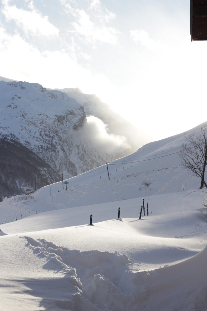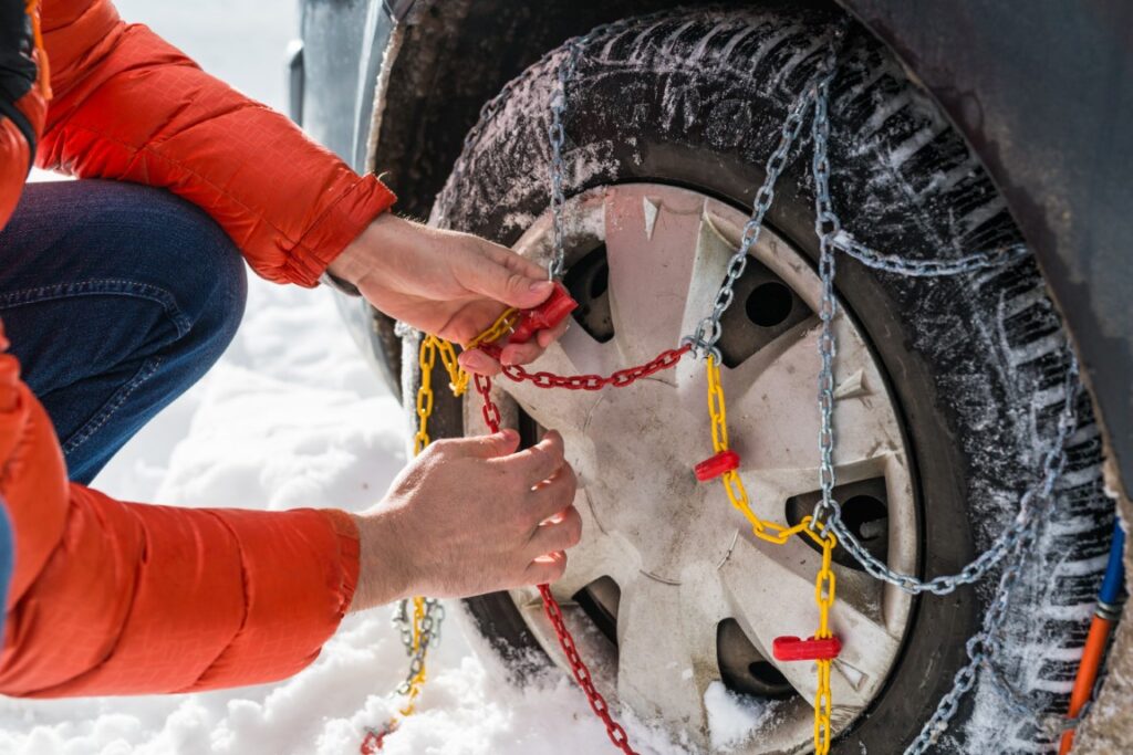 La loi montagne et la météo imposent des pneus adaptés et des chaines ou chaussettes à neige. Des crampons à mettre sous les chaussures sont appréciables pour circuler dans le village.